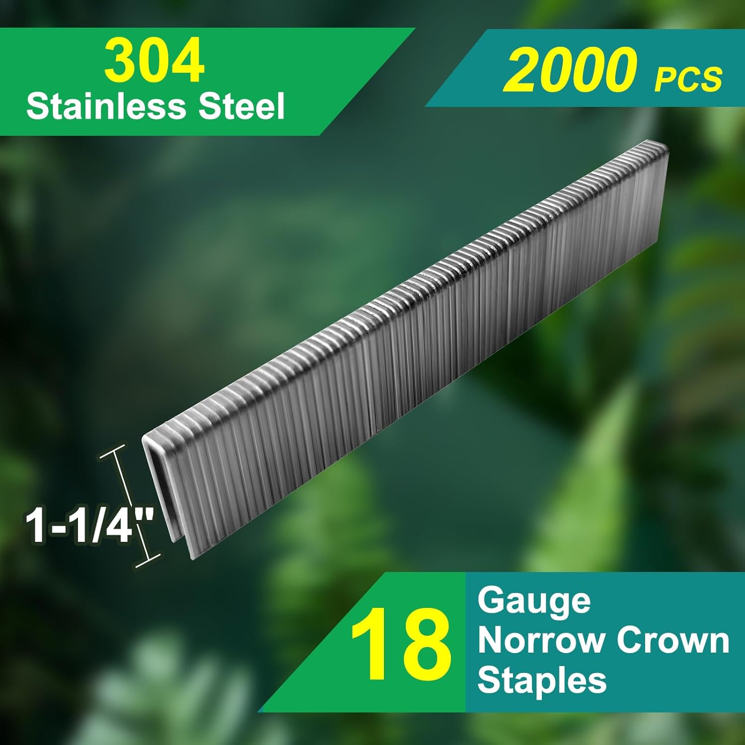 Toicann 18 Gauge 304 Stainless Steel Staples - 1/2"~1-1/2" Length, 1/4" Narrow Crown, 2000 Pcs - Compatible with Pneumatic & Electric Staplers