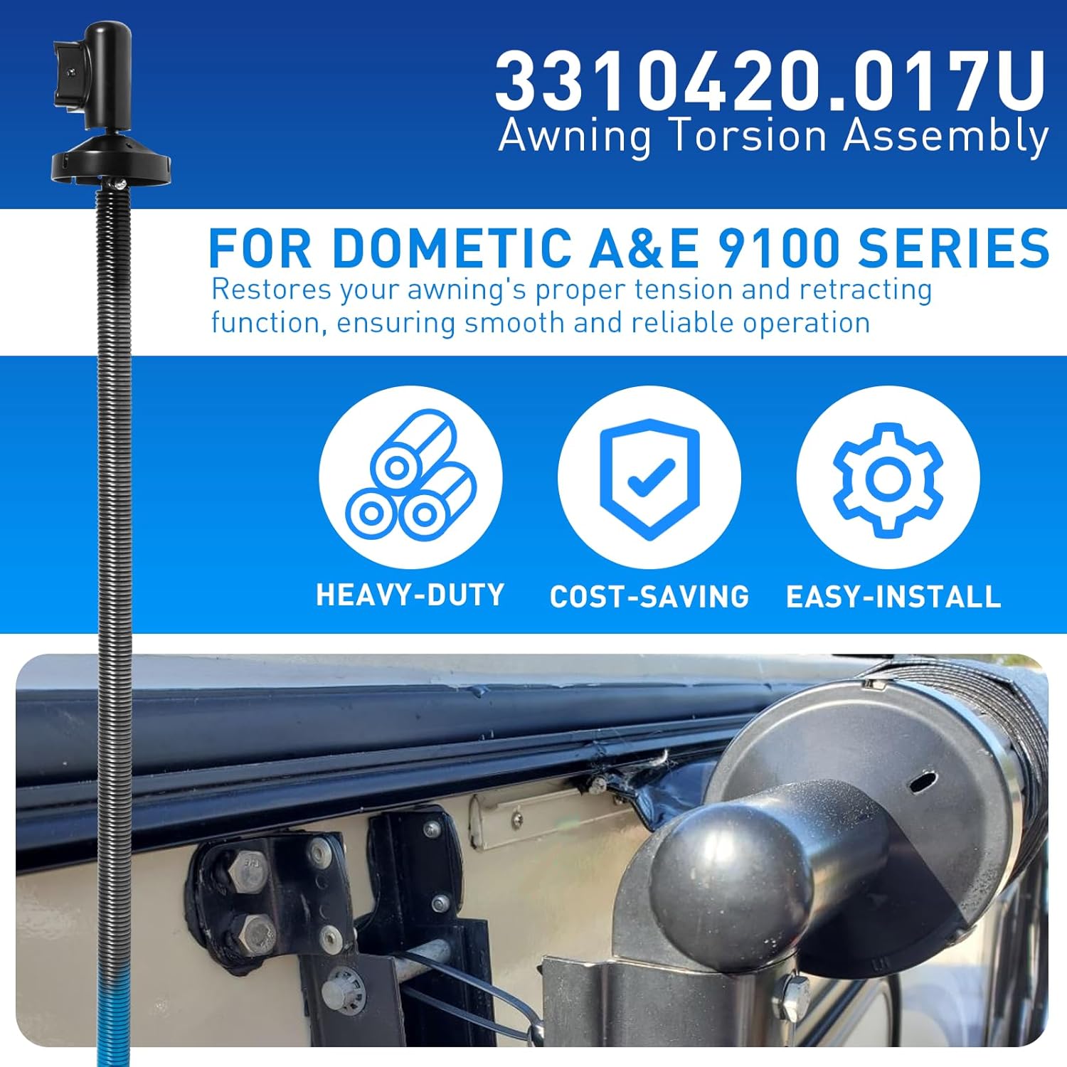 Specifically engineered as a direct replacement for the Dometic A&E 9100 Series Power Awning with part number 3310420.017U. This left-hand torsion assembly restores your awning's proper tension and retracting function, ensuring smooth and reliable operation.
