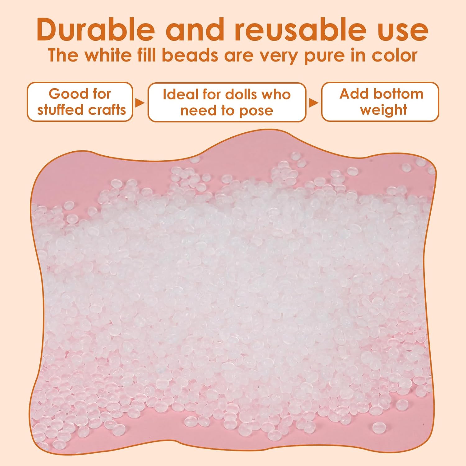 Introducing our versatile 5 lb Poly Pellets, the ultimate solution for all your crafting and stuffing needs. These plastic weighted stuffing beads are designed to provide the amount of weight and stability for your stuffed animals, bean bags, and a variety of other projects.Crafted with safety in mind, our poly pellets feature smooth edges, form uniform filling. Whether you're creating weighted blankets, stuffed toys, or elegant craft projects, these premium weighted beads deliver excellent results every time.Additionally, these washable weighted stuffing beads offer convenience and longevity, maintaining their quality even after multiple washes.Elevate your crafting game with our Poly Pellets—your go-to choice for long-lasting, safe, and effective stuffing beads. Transform your projects and enhance their weight and feel with our premium product today!