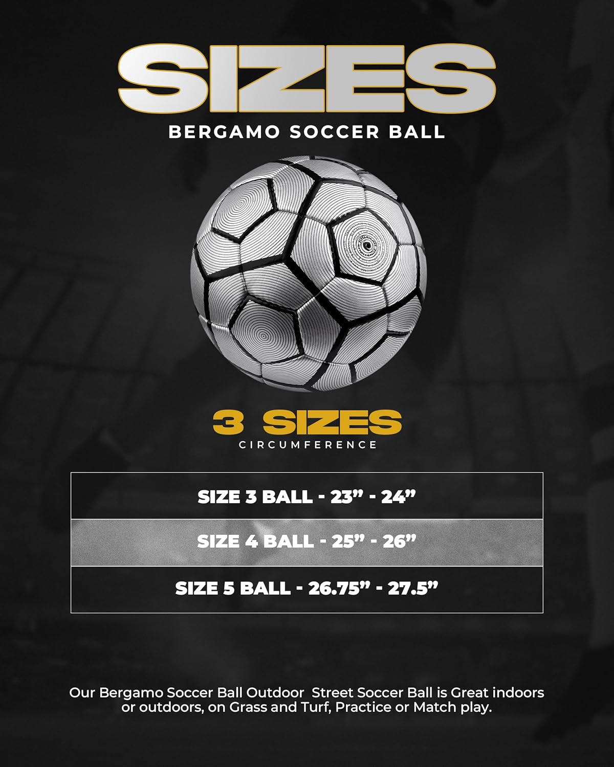 Take your game to the next level with the American Challenge Bergamo Soccer Ball, built for consistent performance and long-lasting durability. Constructed with premium T-9000 Japanese Cordley outer casing, this ball offers an exceptional touch and smooth control on the field.Reinforced with a layer of pre-stretched polyester backing, the Bergamo maintains its shape and balance through intense training. The hand-sewn stitching, using high-tensile polyester thread, ensures durability, while the butyl bladder delivers excellent air retention for extended play sessions.Available in sizes 3, 4, and 5, this versatile soccer ball is perfect for training, drills, scrimmages, and match play.Note: Ships deflated. Designed for grass fields.