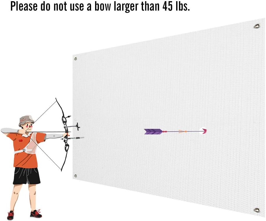 Please do not use a bow larger than 45 lbs. DO NOT taut this net. It's meant to be loose to absorb the energy of the arrow. It don't include a stand for the backstop, you need to mount this yourself. Attachment is need for hanging.It stops the arrows perfectly with an easy arrow removal. Applicable distance: 30-100 ft Applicable pound force: 45 pounds or less Applicable bow and arrow: Compound / Recurve /Traditional Applicable arrow: pointed / round head