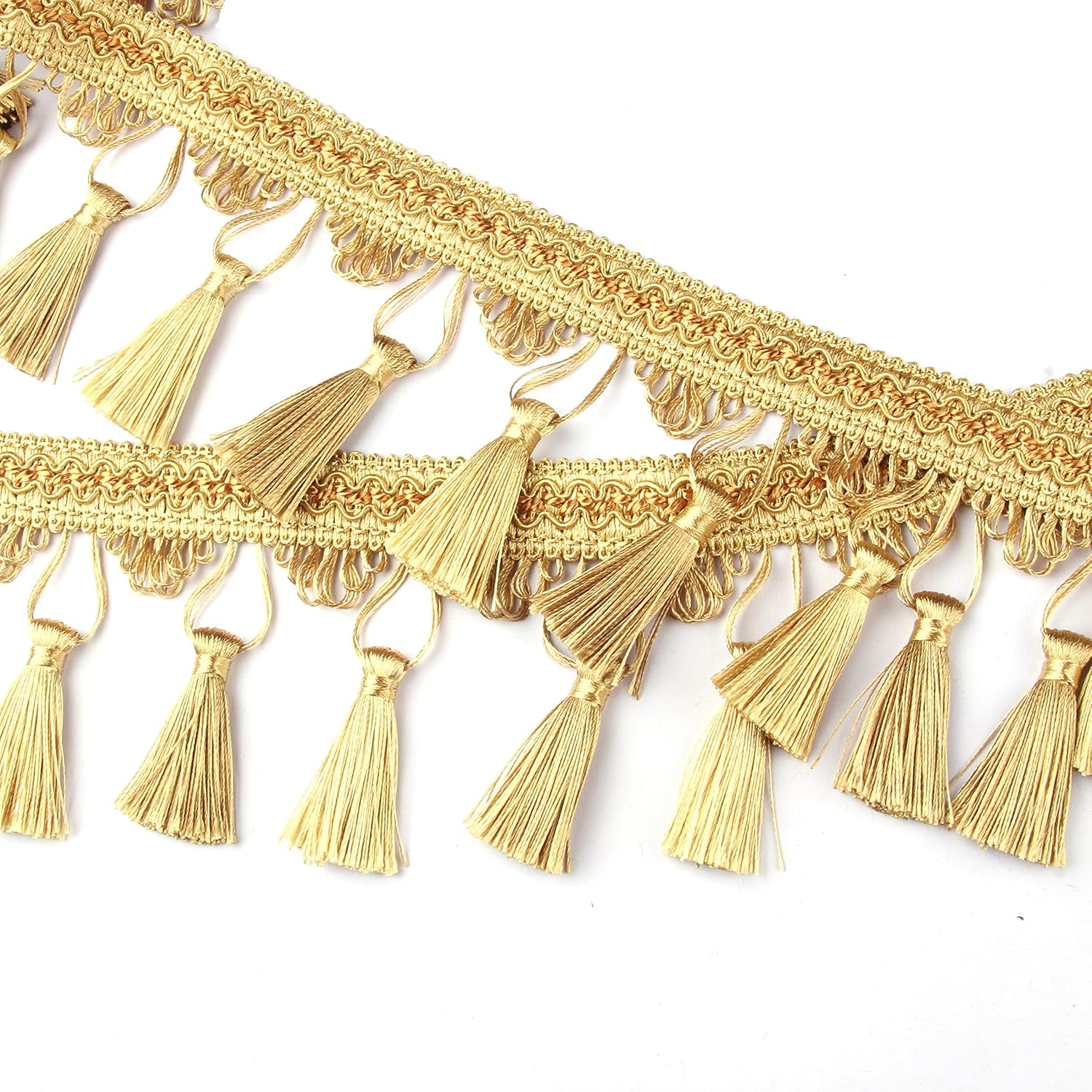 BEL AVENIR Gypsy Bohemian Boho fringe trim is a relaxing fusion of vintage and contemporary, add the vintage feel couched between elegant tassels.Change the look of your Curtains, Blinds, Pelmets, Cushions, Dupattas, Scarves, Skirts, Shorts, Pillow covers, Dress, Gypsy, Boho, Bohemian Ethnic wear, Tunics etc to your own unique style using the Tassel trim. A wide range of colors are available to suit all tastes and decor, many with co-ordinating tiebacks to complete the theme. We want to hear from you!Tell us what you think about this Tassel Fringe Trim. It helps us get better at what we do, and ultimately provide you with better decorative treatment.