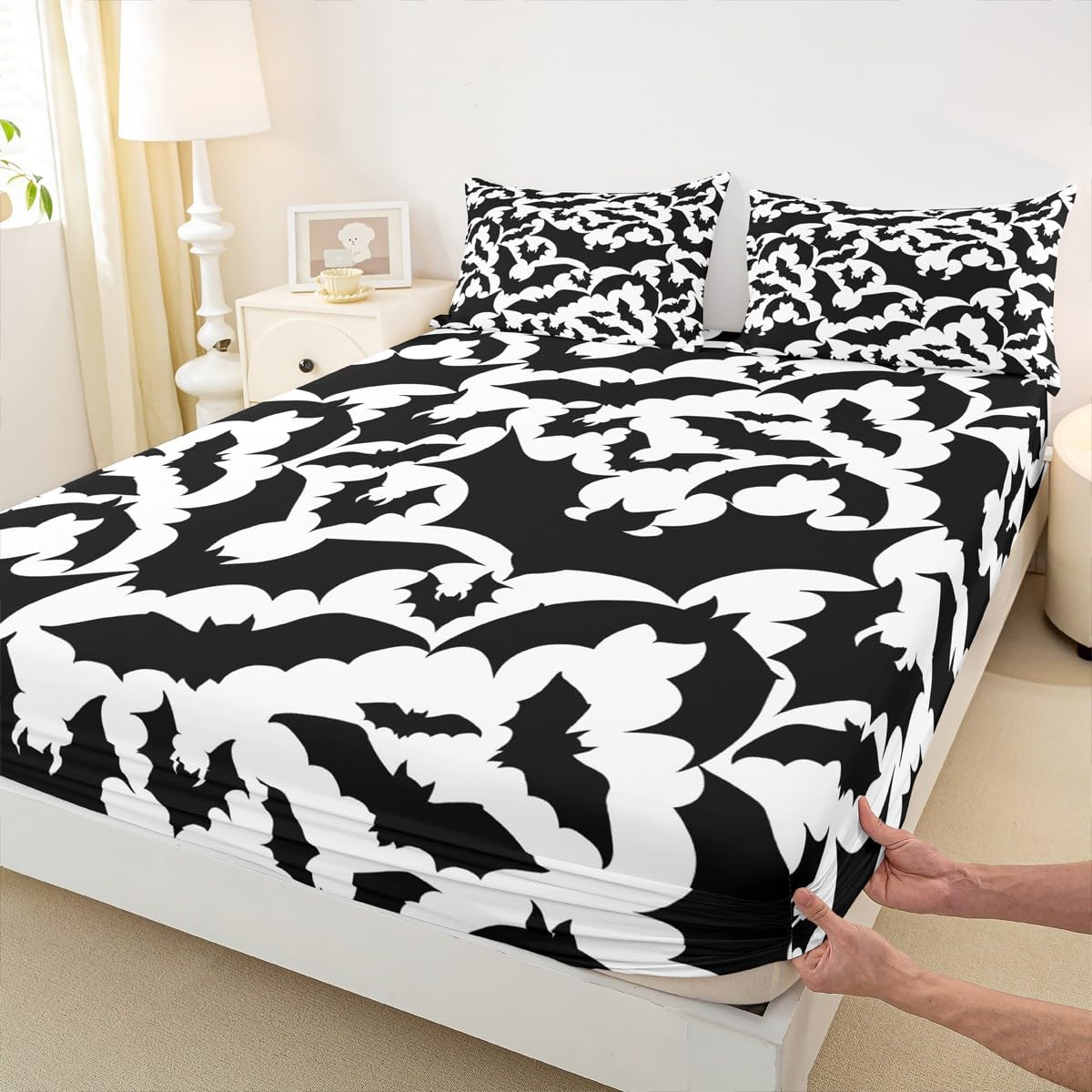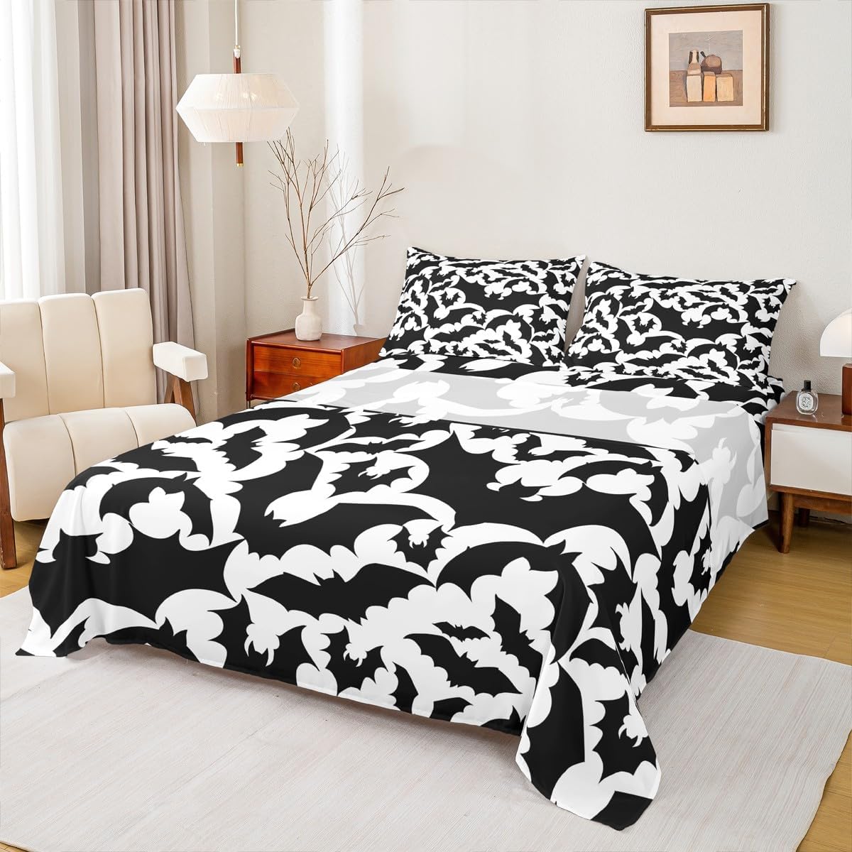 Package Include:1 x fitted sheet,1 x flat sheet,Pillowcase; Our high quality designs match any decor. High Quality Fitted Sheet Set Pattern Bedding Set, simply decorating your rooms any time you want, bringing you fresh feel for year round use. Polyester: Made from polyester microfiber, the sheet set offers strength, anatural resistance to shrinking and a noticeably soft hand feel. Size Information: Twin size 3pcs: 1 Fitted Sheet 39"W x 75"L x 16"H, 1 Flat Sheet 66"W x 96"L, 1 pillowcase 20" x 30". Full size 4pcs: 1 Fitted Sheet 54"W x 75"L x 16"H, 1 Flat Sheet 81"W x 96"L, 2 pillowcase 20" x 30". Queen size 4pcs: 1 Fitted Sheet 60"W x 80"L x 16"H, 1 Flat Sheet 90"W x 102"L, 2 pillowcase 20" x 30". King size 4pcs: 1 Fitted Sheet 78"W x 80"L x 16"H, 1 Flat Sheet 90"W x 106"L, 2 pillowcase 20" x 36". Personalize your bedroom: Beautiful design and colorful print, makes your bedroom unique and brings you a wonderful dream. Washing instructions: Machine wash separately in cold water,hang dry,do not bleach. Occasion: The soft Fitted Sheet bedding sets designed for Children ,Adult, Men, Women, Teens. This Fitted Sheet set is also suitable for full seasons, Spring, Summer, Autumn and Winter. You also can order it for your family and friends.
