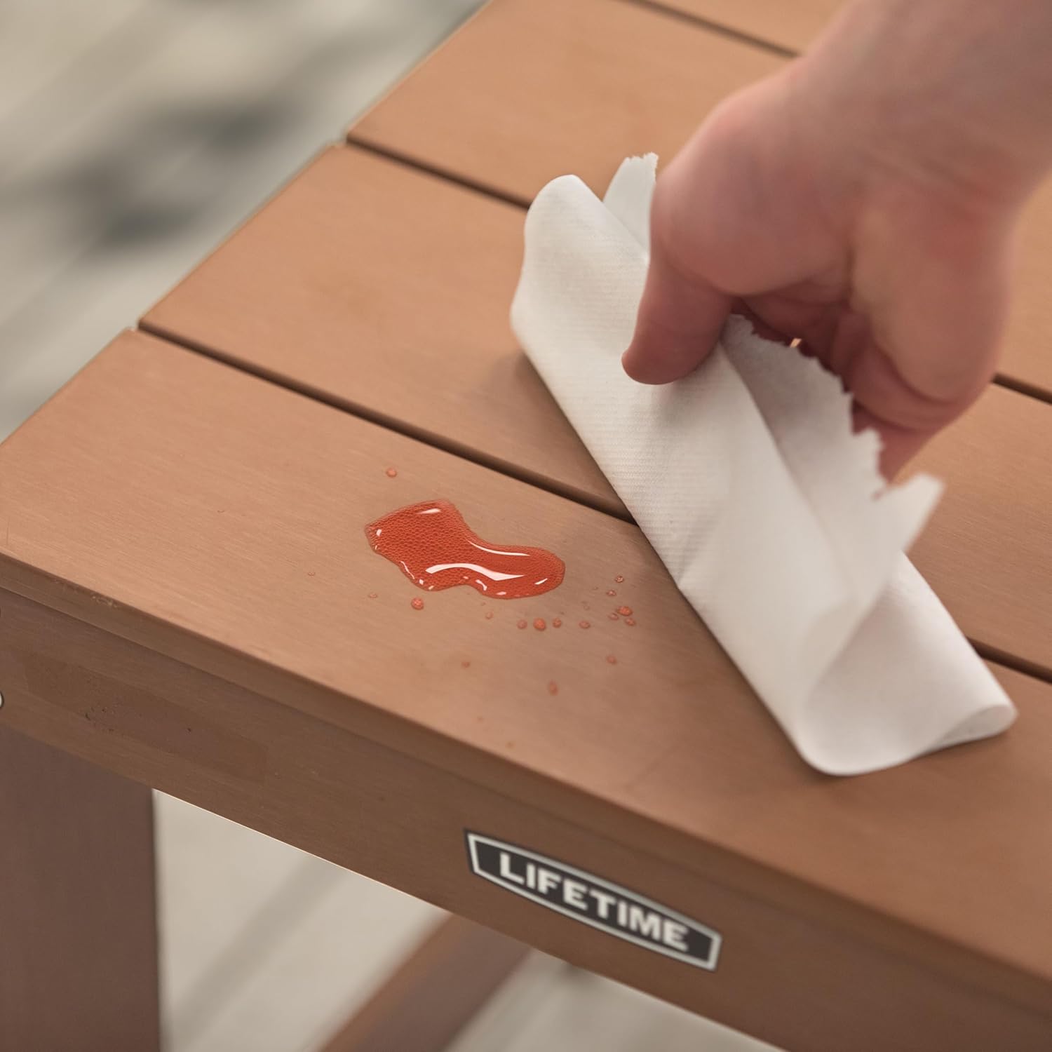Constructed of UV-protected polystyrene simulated wood, the Adirondack Table is compact and weather resistant. It is available in brown and comes in (1) box. 2-year limited warranty. Create the ideal outdoor living space with the Adirondack Table from Lifetime Products. Constructed of weather-resistant polystyrene, the chair is UV protected and designed for outdoor use. Unlike wooden furniture, the simulated wood will not splinter, warp, or rot and never needs to be painted or varnished. So enjoy an afternoon relaxing with family and friends with the Adirondack Table from Lifetime Products.