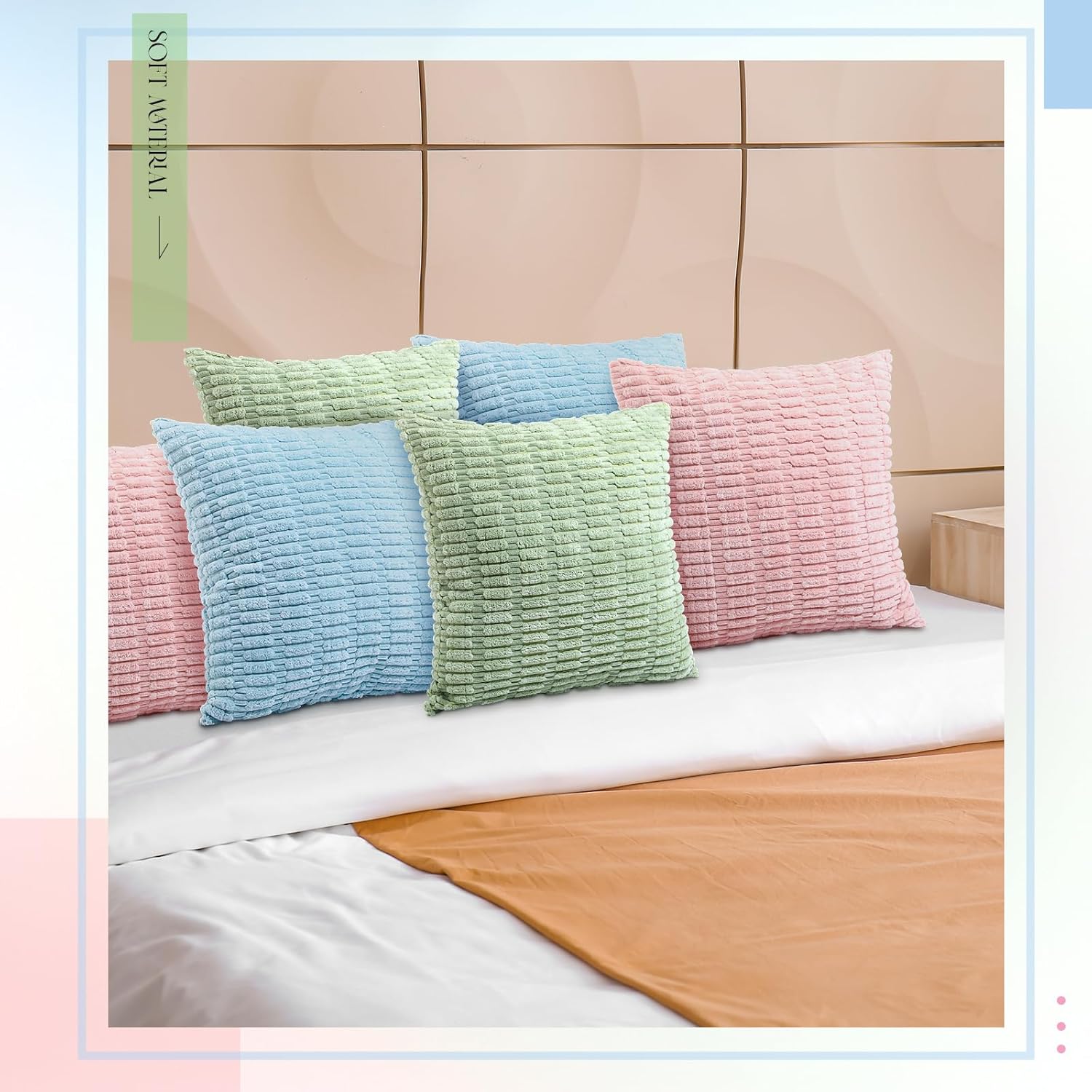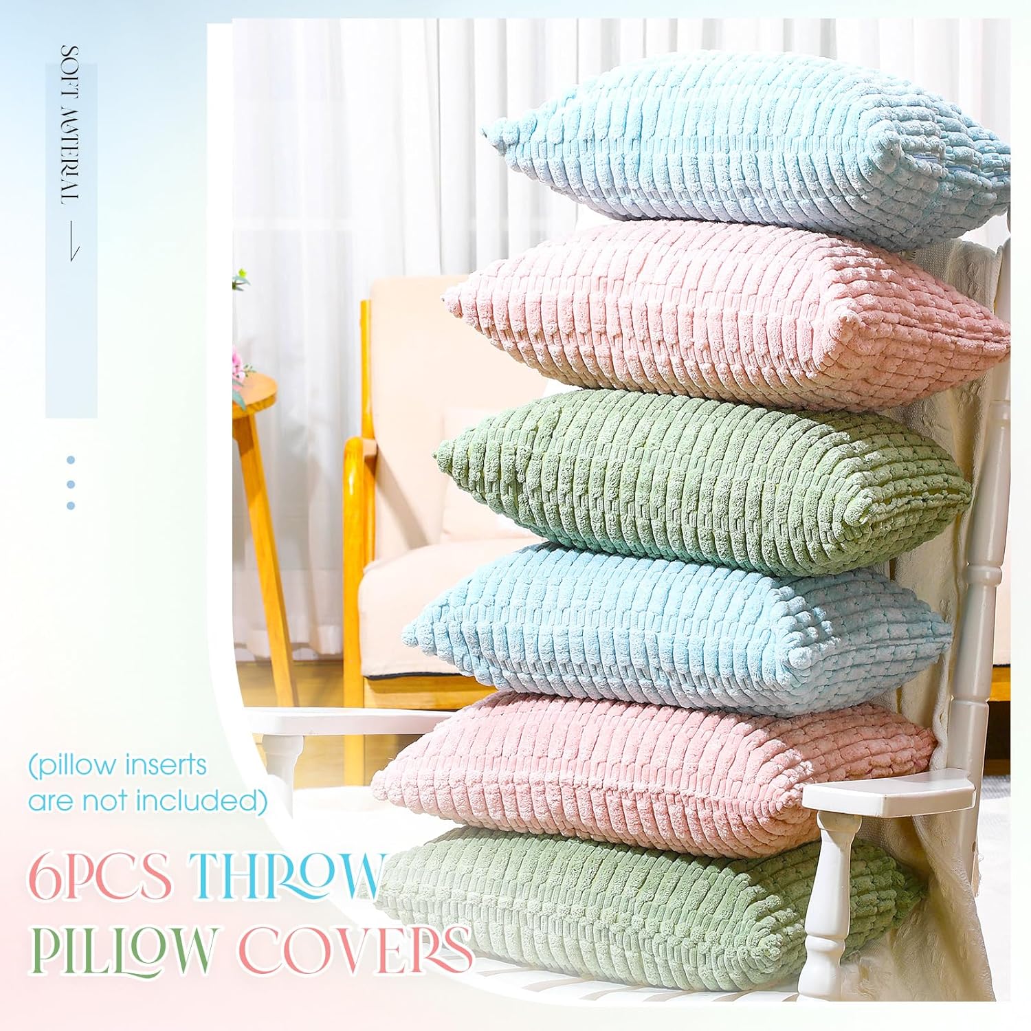 Features: The corduroy throw pillow covers come in a stylish color scheme. The classic design makes the pillowcase simple and elegant, and perfectly integrates the modern home style. Whether it is a sofa in the living room or a bed in the bedroom, it can add warmth and texture to your home. This corduroy throw pillow covers striped pillowcase is perfect for any occasion, perfect for the living room, bedroom, study or outdoor home decor, making it a great choice for autumn home, modern simplicity or Nordic style for atmosphere. Specifications: Material: Corduroy Color: Macarons Color Size: 18 x 18inch(L x W) Package includes: 6 x Throw pillow covers Notes: Manual measurement, please allow slight errors on size. The color may exist a slight difference due to different screen displays.