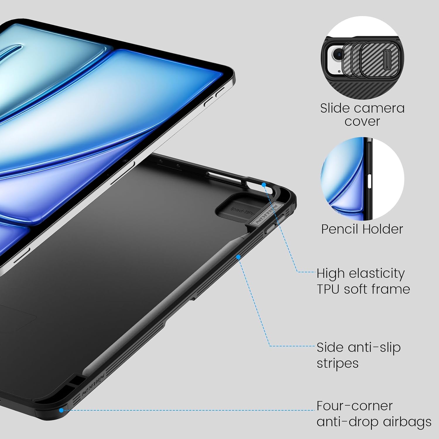 Nillkin Camsheid Pro Case for iPad Air 11 (M3 2025 / M2 2024) iPad Air 7/6/5/4 10.9 Inch (2020/2022) - Protective, Ultra Thin, Magnetic Stable Kickstand with Pencil Charging & Storage,General Aviation, Vertical/Horizontal Stand