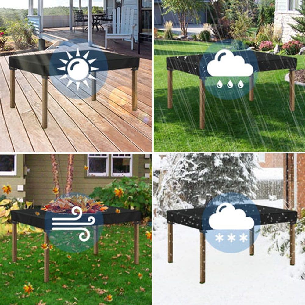 SpecificationType: Outdoor Patio Table Covers WaterproofShape: RectangularMaterial: 600D Waterproof ClothColour: blackSize: Optional(Length*Width*Height)Characteristics① The garden furniture cover is made of Waterproof Cloth, which is tear-resistant and durable.② Garden furniture covers protect your furniture in all seasons.③ Furniture covers are extremely easy to clean, can be easily folded and reused.④ There is a drawstring on the garden cover.⑤ There are 4 corner buckles to ensure a secure fit.⑥ Strong compatibility, applicable to most furniture, can be used indoors or outdoors.How to prolong the service life of furniture cover?In rainy days, suggest placing tall objects between the furniture and patio furniture cover to create a convex curved surface to prevent water accumulation.When the wind is very strong, we suggest you put some heavy items on the table cover to better prevent the cover from blowing away.Regular cleaning of accumulated water and dust would prolong the service life of the furniture cover.