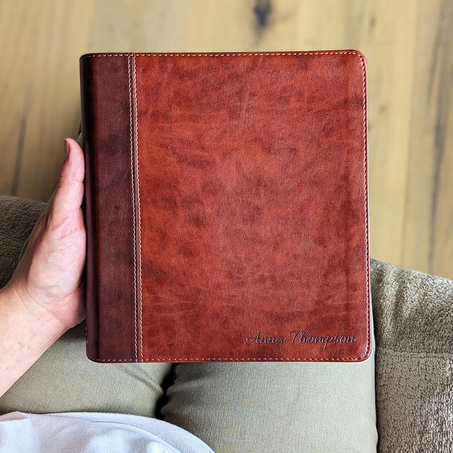PERSONALIZED DESIGN: Custom laser engraving makes this Bible a one-of-a-kind gift. Add a name or short message to create a meaningful keepsake that reflects faith and inspiration. CRAFTED TO PERFECTION: This Personalized ESV Journaling Study Bible features a classic brown leatherlike cover, 2-inch ruled margins for notes, prayers, and reflections, and more than 12,000 in-depth study notes. It offers the perfect balance between study Bible depth and journaling space for personal growth and devotion. BIBLE FEATURES: Includes 12,000 study notes, 80,000 cross-references, 900 facts, 120 character profiles, 10 topical articles, and 80+ maps and illustrations. Designed to help readers explore Scripture with context and clarity. Size: 8.75" x 8" x 1.75". CHRISTIAN GIFT IDEA: A personalized ESV Bible makes a unique and lasting gift for birthdays, graduations, confirmations, or holidays. Perfect for men, women, and teens who want to deepen their study and reflection. SMALL BUSINESS PROMISE: Each Bible is engraved with care and shipped promptly by our family-owned Christian shop. We’re committed to quality craftsmanship, fast service, and customer satisfaction with every order.
