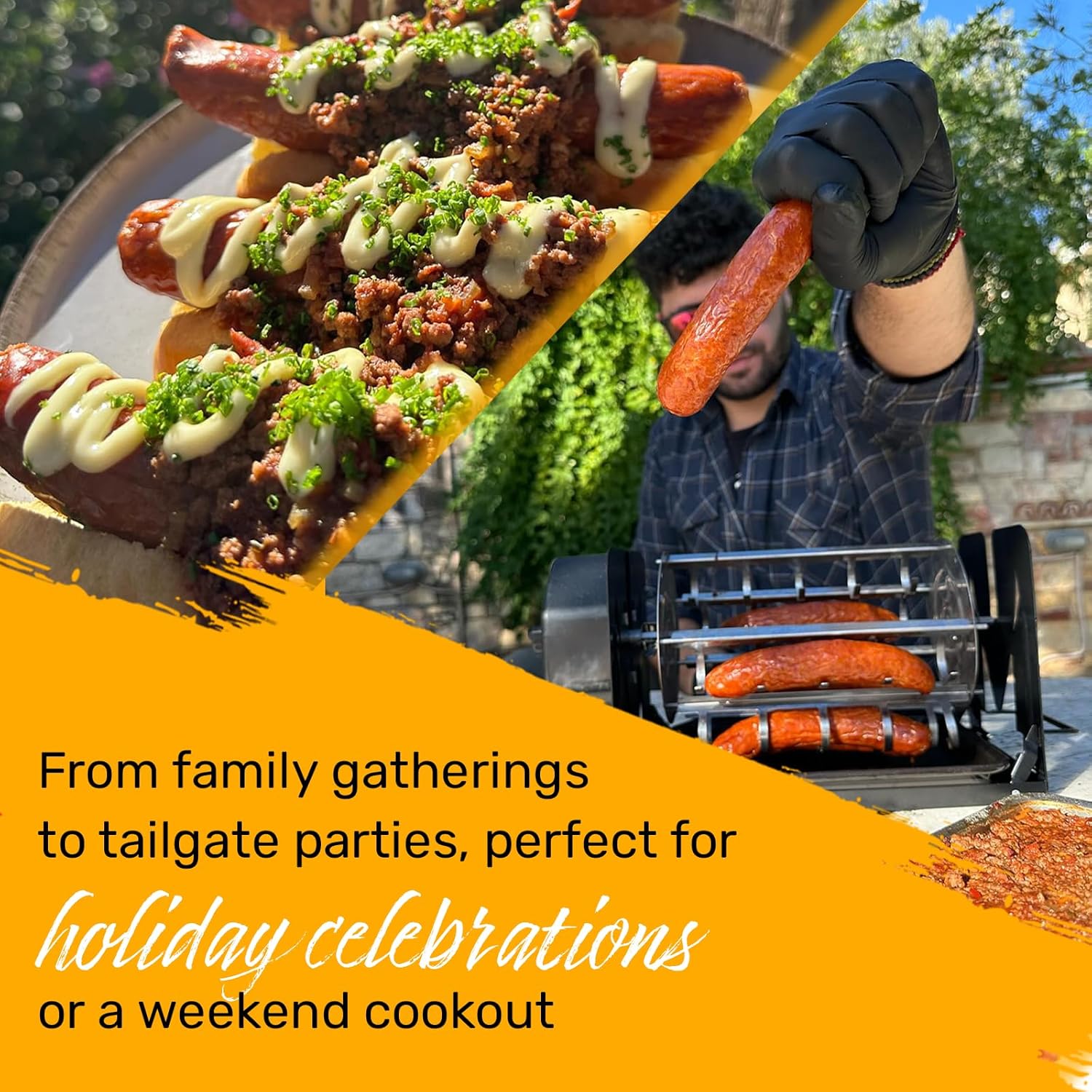 The Plus Sausage Carousel in Stainless Steel delivers professional-quality rotisserie grilling right in your home. Designed for cooking up to 7 sausages or hot dogs, it uses a wind-up kinetic mechanism to rotate automatically, ensuring juicy, evenly cooked results every time.