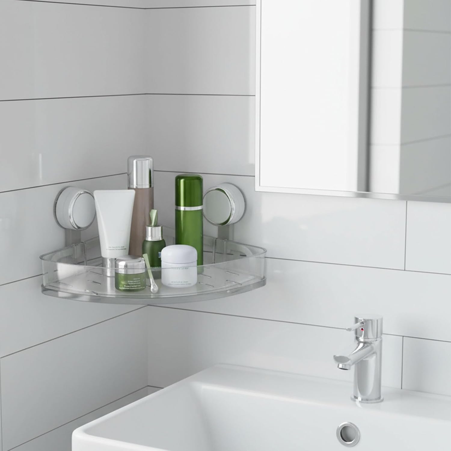 product description shower organizer,bathroom essentials 2 set,White shower accessories caddy,No-Drilling & Removable for bathroom Holder,Rustproof Shower Shelves,shower rack,Bathroom basket, shower caddy 90° corner Features Corrosion Resistant: Suction shower shelf is made up of all high-quality materials to prevent any rusting/corrosion and to impart it a longer life. Use: bathroom shower shelves help you get rid of clutter, make your bathroom kitchen more tidy, beautiful, can store shower gel, shampoo, soap, towels, lotion, toothbrushes, dishes, toys, etc. Parts List: 1 x shower basket note: The bathroom shelf is only suitable for 90° corners, not for non-90° corners.