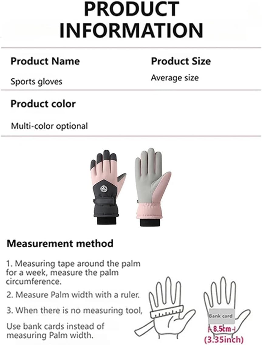 Waterproof Material:Crafted with waterproof material, these gloves keep your hands dry and comfortable even in wet conditions.Windproof Protection:Windproof feature provides additional warmth and comfort, protecting your hands from harsh weather conditions.Touch Screen Compatible:These gloves are compatible with touch screens, allowing you to use your devices without removing them.Anti-Skid Design:The anti-skid design ensures a secure grip, enhancing your control while skiing or using touch screens.Shockproof Gloves:Shockproof gloves absorb impacts, reducing the risk of injury during sports or outdoor activities.Specifications:Name: Ski glovesMaterial: PolyesterColor: Black,white,green, purple, pinkPackage included:1 Pair x Ski glovesNote:The above sizes are all manually measured, there may be some errors for reference only,please refer to the actual product!Due to the light, the color may be slightly different from the real color.