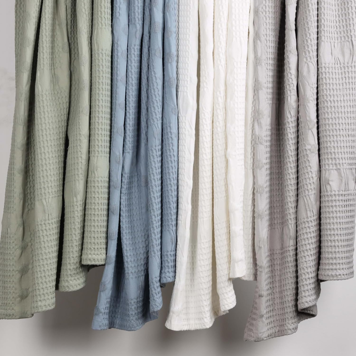 Transform your living space with the exquisite Superior Mai Waffle Cotton Blanket, expertly crafted with a geometric waffle design and a sturdy self-binding hem for unparalleled style and durability. Crafted from 100% cotton, this blanket offers year-round comfort with its medium weight and breathable texture. Available in Light Blue, Platinum, Sage, and White, this blanket complements any decor, making it ideal for bedrooms, living rooms, or as a cozy throw.