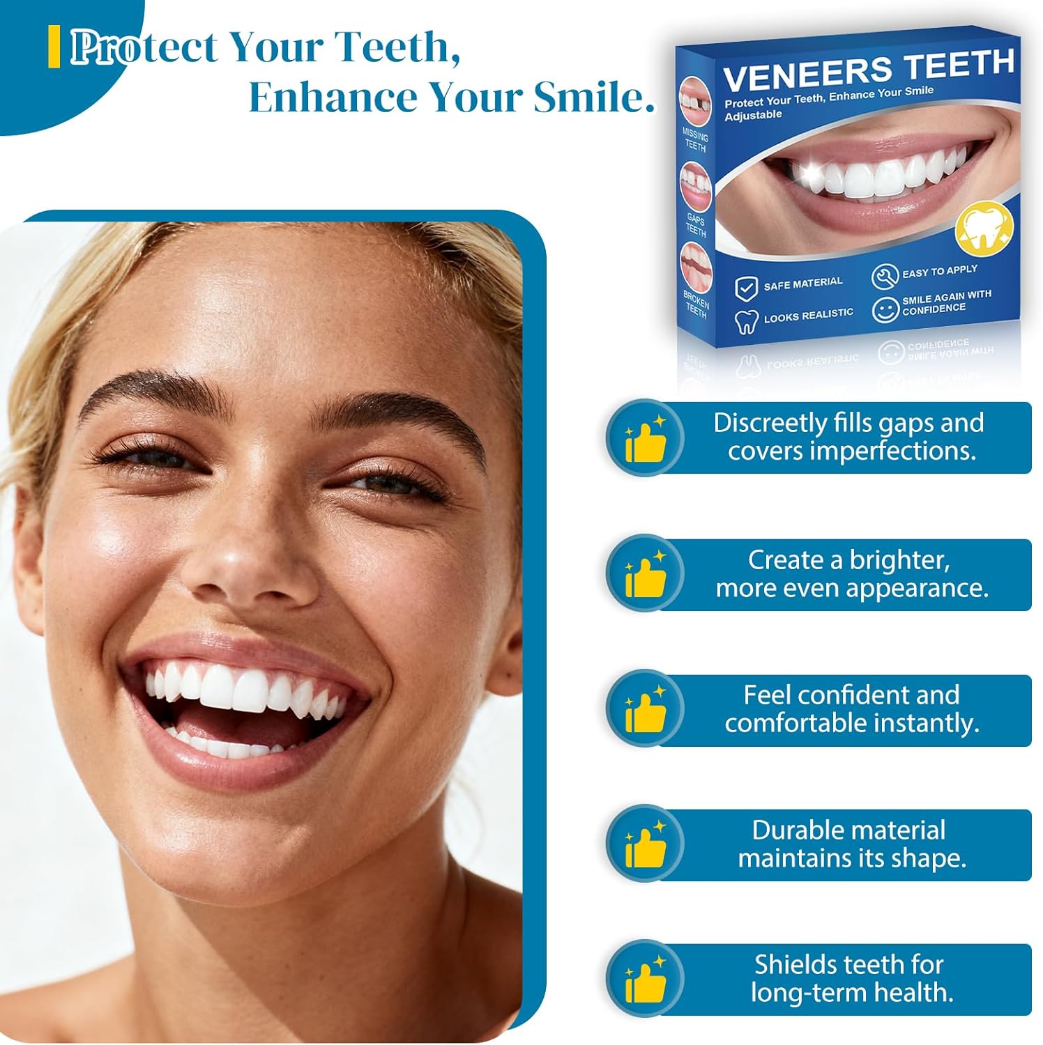 Elevate your smile effortlessly with this all-in-one Temporary Decorative Veneers Kit, a cosmetic solution for women and men seeking a natural-looking way to enhance their appearance temporarily. This 1-pack kit includes everything needed to achieve a seamless, radiant smile in minutes—no specialized assistance, extra tools, or complicated steps required. Crafted with a pre-blended natural shade, the veneers feature a subtle color gradient, lifelike texture, and authentic translucency that mimics real teeth, avoiding the unnatural one-tone look of lower-quality options. Whether in photos, face-to-face conversations, or daily interactions, the smile appears genuine and vibrant, allowing comfortable laughing, talking, and engaging. Designed for convenience and comfort, the veneers use a hot water moldable design that adapts to individual mouth contours. Simply soften the high-grade material in hot water, press gently to shape, and let it set for a personalized, snug fit that stays securely in place throughout the day—no slipping or frequent readjustment. Made from skin-friendly, non-irritating material, the ergonomic, low-bulk design ensures extended wear is gentle, making it suitable for all-day use from morning meetings to evening events. Stain-resistant and durable, the construction holds up to daily use, including exposure to coffee, tea, and wine. Maintenance is hassle-free: a quick rinse under warm water keeps the veneers clean and bright, no harsh cleaners necessary. Versatile and portable, this all-in-one kit is perfect for weddings, dates, job interviews, photo shoots, or everyday confidence boosts—enhance your smile anytime, anywhere with zero preparation. Suitable for both men and women, it offers a cost-effective, flexible way to refresh your appearance without long-term commitments, combining natural aesthetics, custom comfort, and low-maintenance durability.