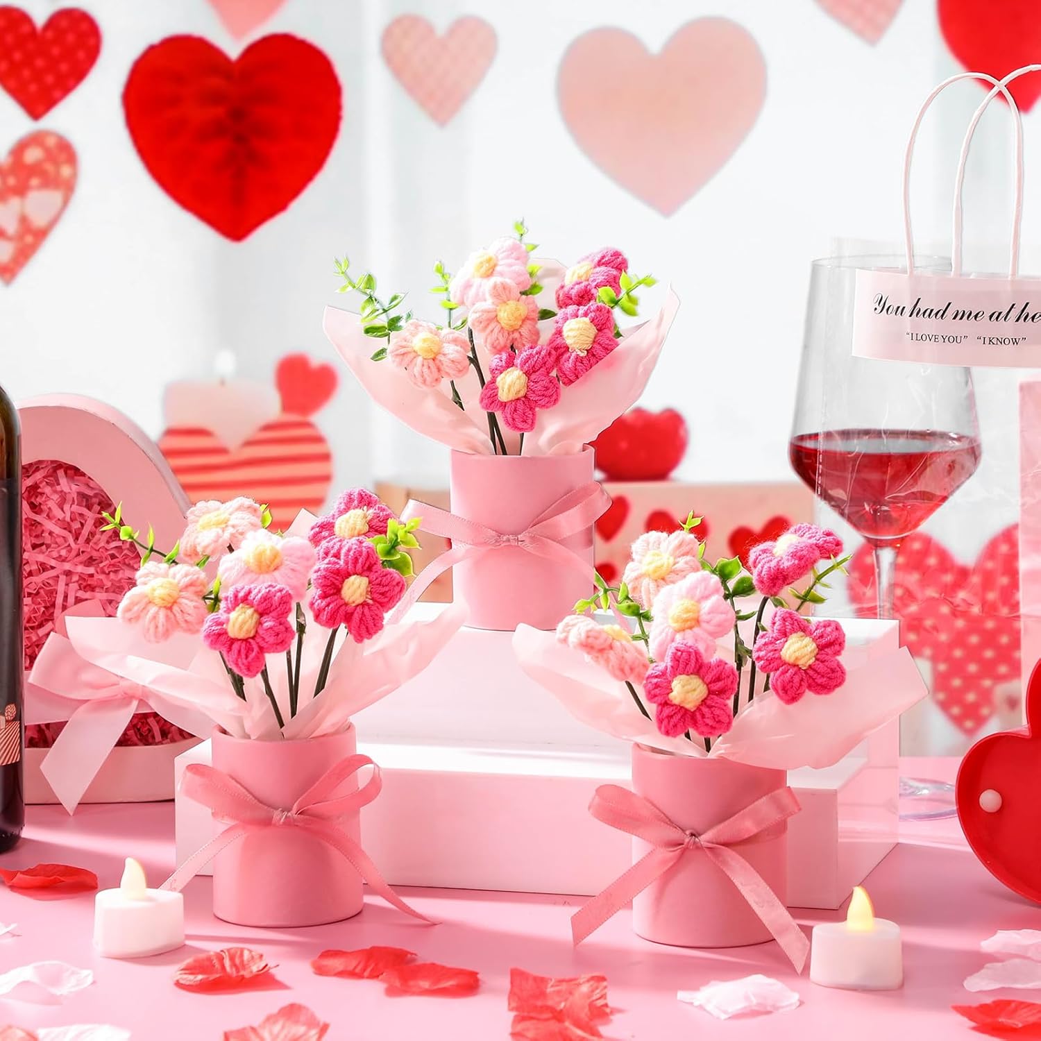 Features: Each cream puff in this artificial cream puff flowerpot is meticulously hand crocheted, making it a unique crocheted cream puff flowerpot gift set, the suitable surprise gift for your loved one on Mother's Day These small and exquisite crocheted bouquets, packaged in gift bags, are ideal gifts for various occasions such as Valentine's Day, anniversaries, Mother's Day, and birthdays. They also make beautiful interior decorations that can enhance your home's style. Specifications: Material: yarn, plastic, cardboard Color: pink Size: 4.72 x 5.91 inches/ 12 x 15 cm Package includes: 6 x Crocheted puff flower potted plants 6 x Gift bags Notes: Manual measurement, please allow slight errors on size. The color may exist a slight difference due to different screen displays.